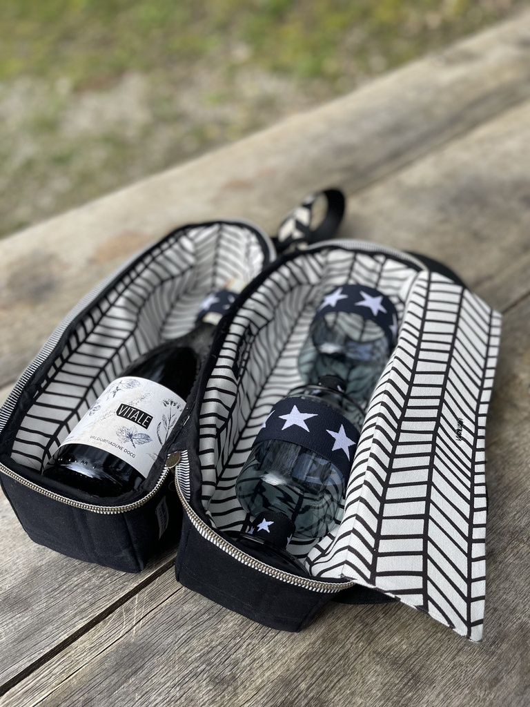 Jeder Rucksack ist ein Unikat und handgemacht von Frau Lizzi, aus Nussbaumen. Damit der Wein kühl bleibt, ist der Rucksack isoliert.